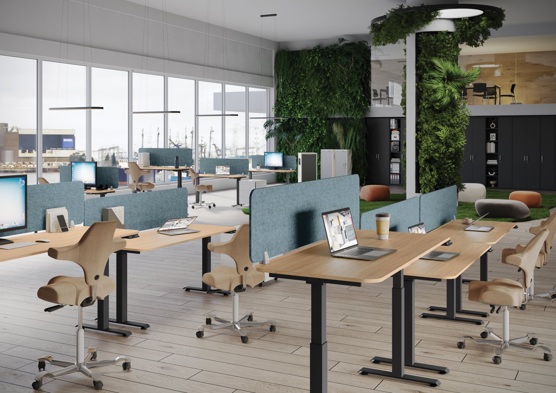 Stanowiska pracy można wydzielić za pomocą tapicerowanych przegród. Są one solidnie i estetycznie wykonane.