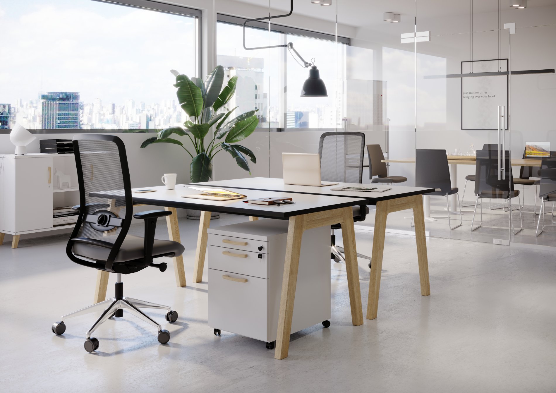 Wykorzystaj meble z systemu BALWOO, aby stworzyć w biurze ciepłą atmosferę, rozjaśnić je oraz wnieść do niego poczucie spokoju i harmonii. Ta kolekcja to najlepszy kompromis między biurową powagą a stylem charakterystycznym dla strefy relaksu.