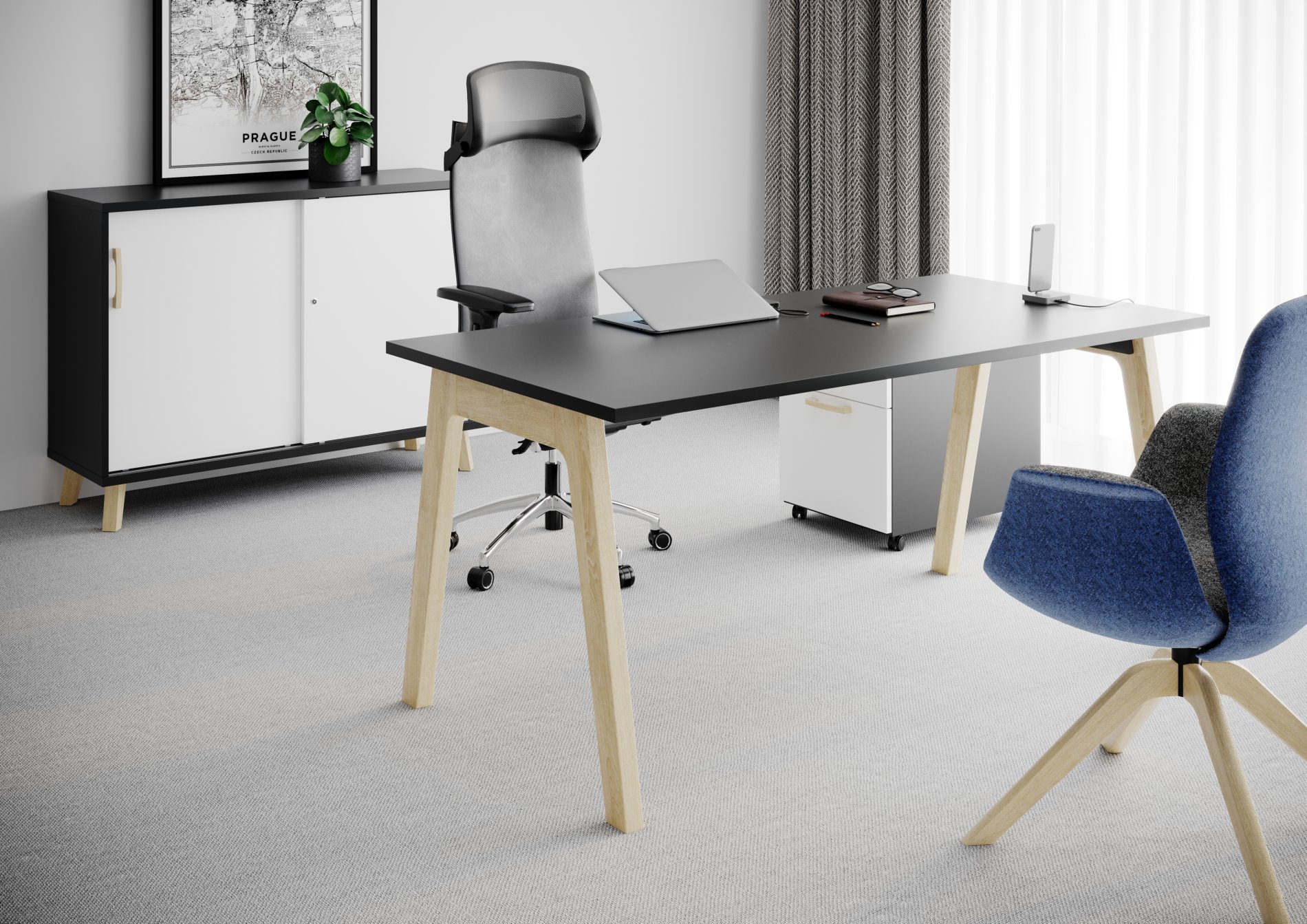 BALWOO to kolekcja mebli biurowych, którą stworzono, aby móc wnieść przytulny nastrój do biur, sekretariatów, sal konferencyjnych. To efektowne wyposażenie, które powstało dzięki zestawieniu uroku drewna dębowego z minimalistyczną, chłodną bielą, szarością lub grafitem.