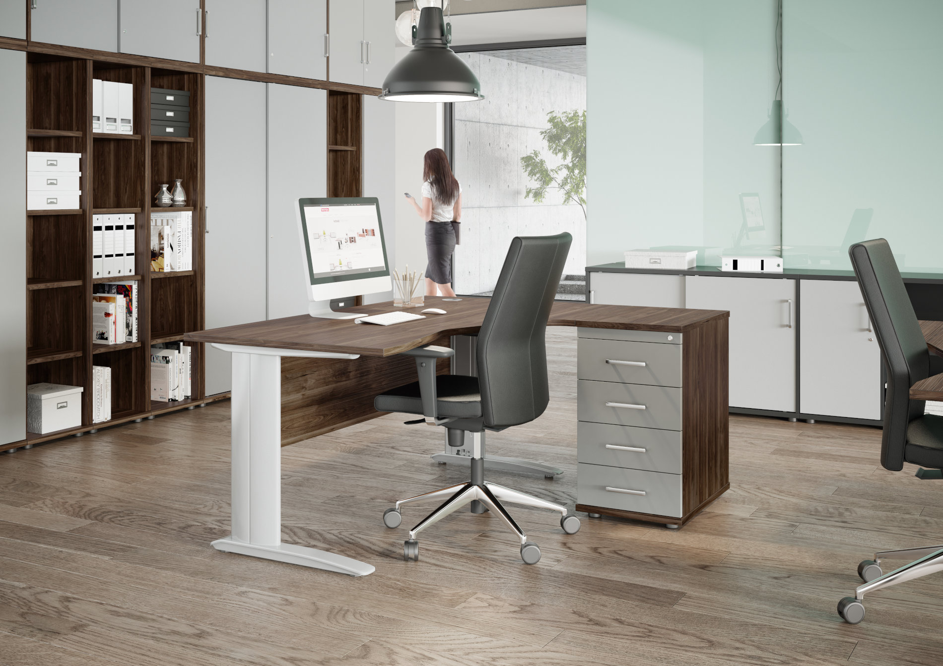 Komo to propozycja dla klienta dostrzegającego wartość w stabilnych, kompleksowych rozwiązaniach. Różnorodny wybór elementów zapewnia możliwość tworzenia funkcjonalnych i ergonomicznych miejsc pracy. System Komo posiada blendę płytową. Noga metalowa wyposażona jest w pionowy kanał kablowy.