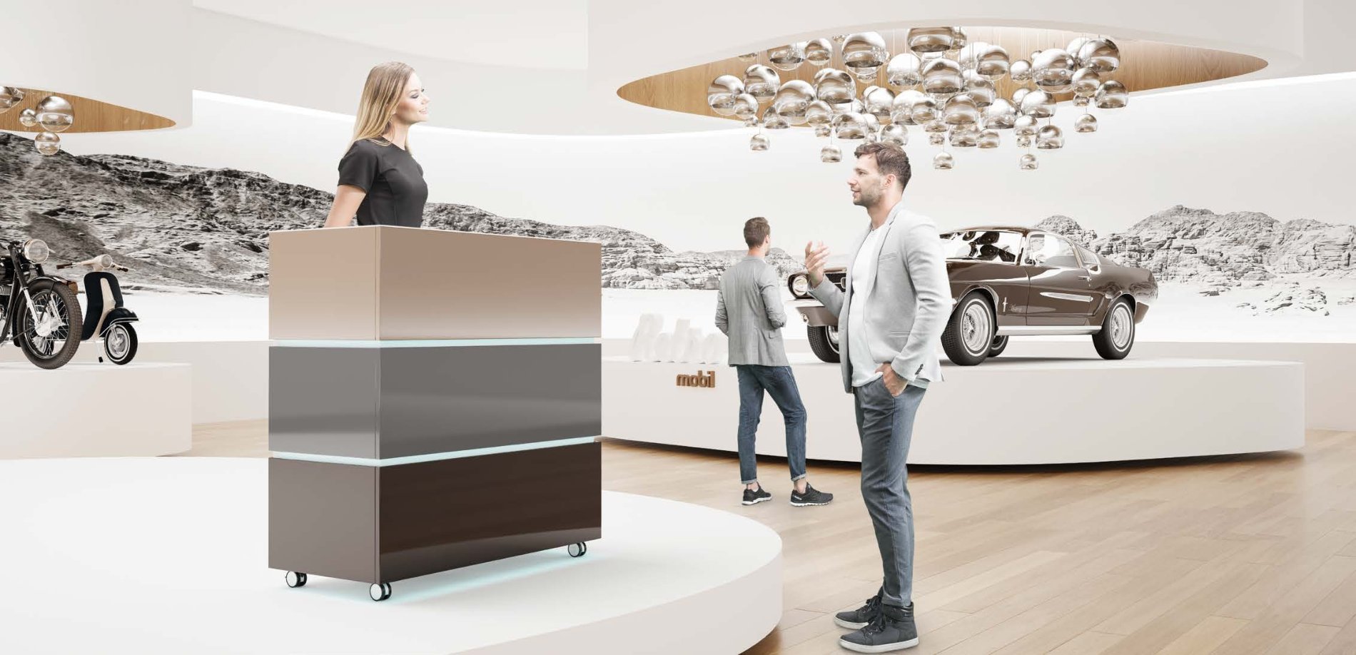 Ladę LITTLE PEARL wyposażono w wytrzymałe, ogumione kółka z hamulcem. Mobilność oraz uniwersalna stylistyka sprawiają, że łatwo dostosować ją do nowych pomieszczeń i nowych sytuacji.