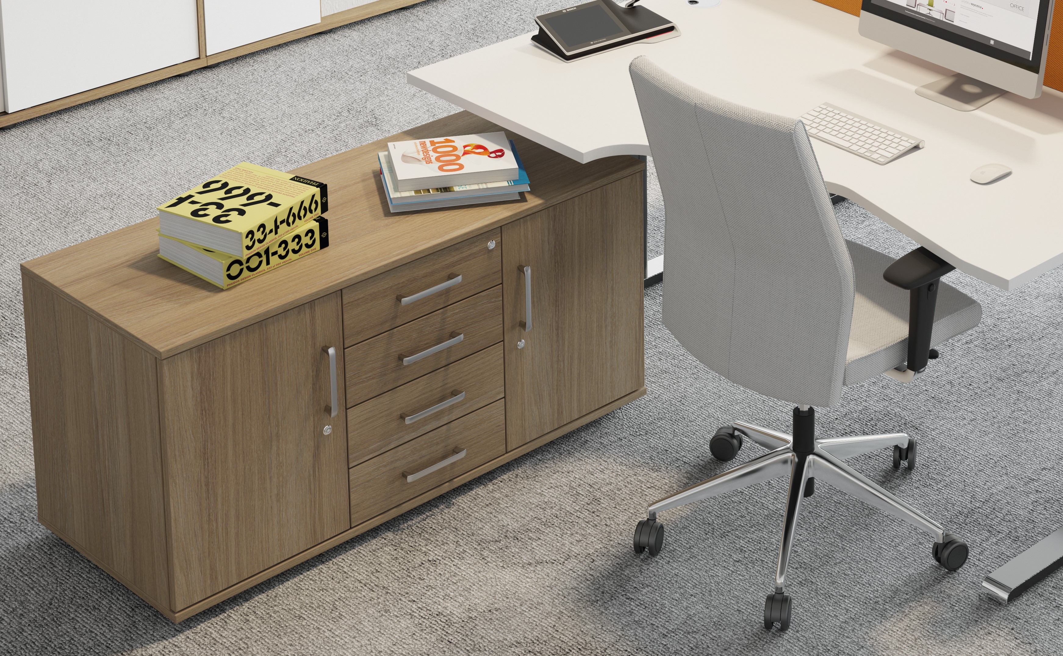 Szafki przybiurkowe to dodatkowa przestrzeń do przechowywania niezbędnych dokumentów. To również możliwość powiększenia blatu roboczego biurka. Szafki przybiurkowe dostępne są w wielu wariantach i wielkościach, co daje szerokie możliwości aranżacyjne nowoczesnego biura.